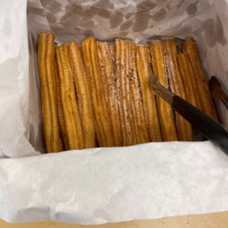 Nice and fresh churros! The churros aren't thin like other places. They were nice and crispy on the outside and fluffy on the inside. The bakery made it fresh once you order it. I haven't tried the churros with fillings, but you definitely can't go wrong with the original. Service is usually quick but unfortunately there was a huge order ahead of me so it took awhile to get serviced. The bakery has a ton of items to choose from! I would recommend to order on the phone ahead of time so your order is ready when you get there! I've heard the lines can get pretty long! There's parking in the back & on the street!